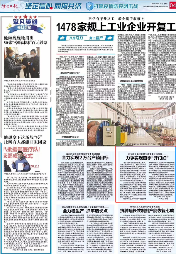 杨恒坤说,为配合做好我市疫情防控工作,东方电子旗下的海颐软件和股份公司在春节假期尚未结束时就组织70多名技术人员通宵分析山东省公安厅、海南公安厅、烟台市大数据局等用户需求,设计软件架构,24小时日夜不间断开发,最短用三天时间就完成了疫情防控调查系统的联调测试,并于上线,为准确收集信息、统计疫情数据提供了高效便捷的手段,有效保证了海南、山东以及烟台市疫情防控大摸排数据实时交互的准确性,展现了技术实力和国企担当,受到了有关部门的表彰。