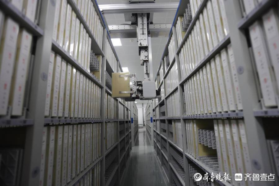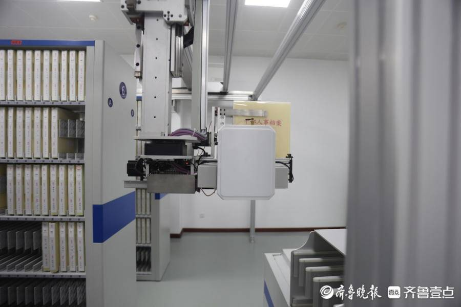 在烟台,档案管理更先进、更智能,单卷档案从下指令到定位存取只需1.5分钟,这得益于烟台东方瑞创达电子科技有限公司推出的最新产品——智能化无人档案库房项目。据悉,该产品是目前山东省首个天轨机械手抓取模式的无人智能库房。近日,记者走进这个“智能库房”,切身体验机械手智取档案的便捷与安全。