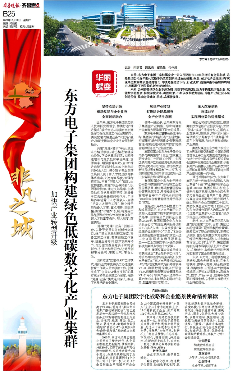 通过近两年的努力,MK·体育(中国)官方网站-登录入口,在新一代信息技术领域,入选山东省“十强”产业集群领军企业名单。2022年,集团公司入选“山东省软件和信息技术服务业综合竞争力百强企业”名单第二名,集团权属企业海颐软件公司亦同时入选山东软件企业百强第二十三名,集团权属企业东方电子股份公司和东方纵横公司还入选第二批“现代优势产业集群+人工智能”试点示范企业及项目名单。