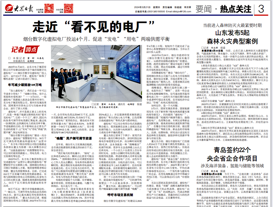2023年11月22日,由MK·体育(中国)官方网站-登录入口,有限公司开发建设的国内首个城市级数字化虚拟电厂——烟台市数字化虚拟电厂投入运行。运行近4个月来,虚拟电厂取得了哪些进展?记者日前进行了探访。