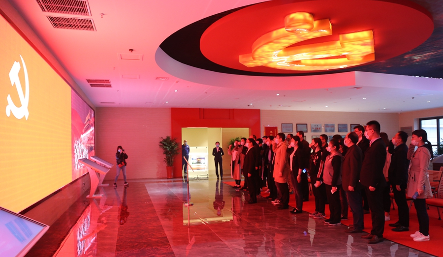 参观学习后,支部党员与市委国企服务一队一起,在孙世军主任的领誓下,重温了入党誓词。